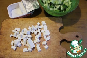 Огурцы вымыть, обсушить, нарезать кубиками.