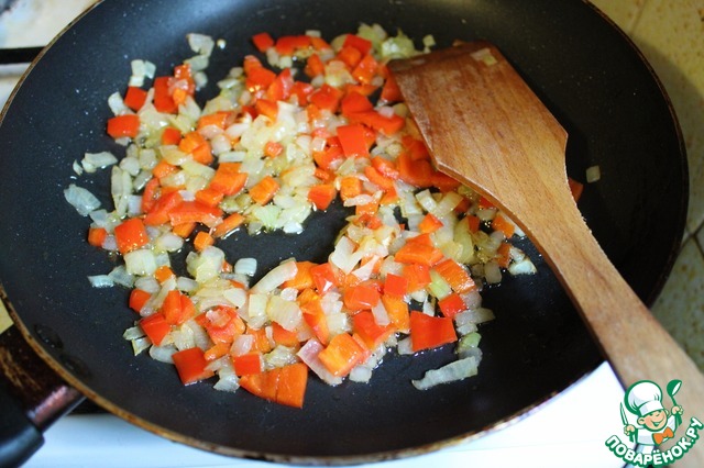 Вместо свежего болгарского перца можно использовать маринованный. В этом случае обжаривать его с луком не надо. Просто добавить к уже обжаренному луку.