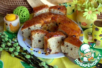 Яйца взбить с сахаром в густую пену, добавить творожную массу, растопленный маргарин, соду и просеянную муку.
