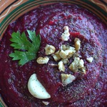 Готовый суп приправила молотым кориандром и грецкими орехами с петрушкой и чесноком.