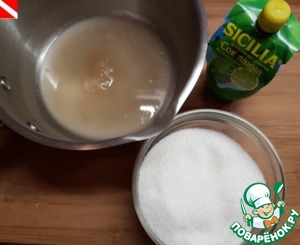 Агар-агар предварительно (если \это требуется по инструкции) залить водой. Сварить сироп - замоченный агар-агар, сок лайма ТМ Sicilia, сахар довести до кипения и варить до появления пены. На индукционной плите это займет 1-2 минуты.