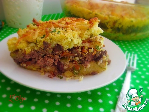Выложить сверху оставшуюся часть кус-куса и снова присыпать сыром. Отправить запекаться в разогретую до 180 градусов духовку на 20-25 минут до румяной корочки.