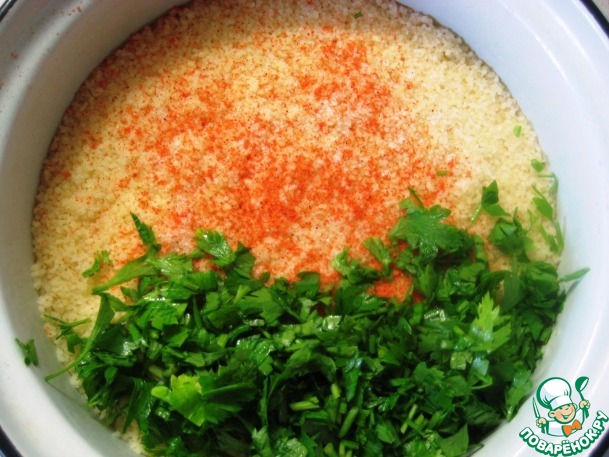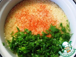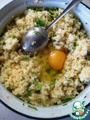 Добавить к кус-кусу яйца, перемешать тщательно.