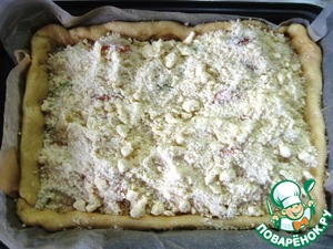 Присыпать всю поверхность пирога штрейзельной крошкой.