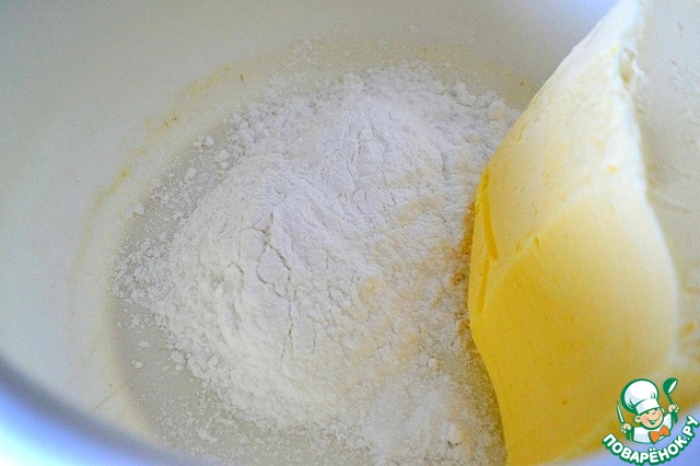 Пудру смешиваем со сливочным маслом - не растапливать, смешивать руками.