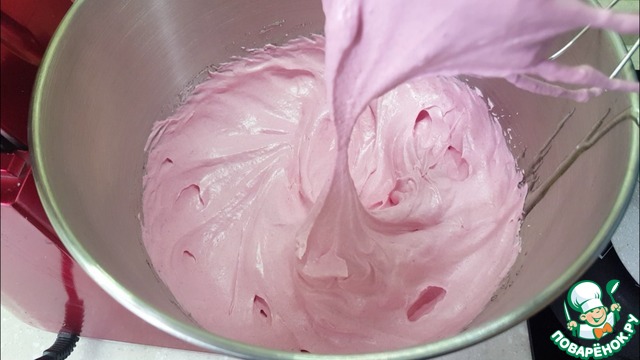 Одновременно с этим взбиваем на низкой скорости холодное пюре и белок. Когда сироп активно закипит переключаем на максимум. Пюре должно посветлеть и увеличиться в объеме