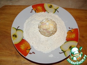 Мокрыми руками скатать из получившейся массы небольшие шарики, насыпать в одну миску муку, в другой слегка взбить одно оставшееся яйцо, в третью миску насыпать сухарей. Сначала крокеты обмакнуть в муку