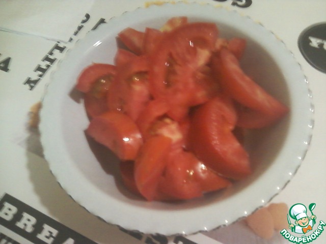 Режем помидоры полукольцами (лучше взять сливку, на более плотная и не разваривается). Измельчаем зелень петрушки и укропа.
