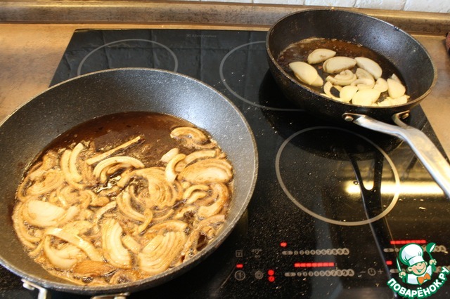 • Ставим на разогрев две сковороды, наливаем небольшое количество растительного масла и хорошо нагреваем.