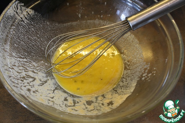 • Отделяем два желтка от белков, перемешиваем венчиком.