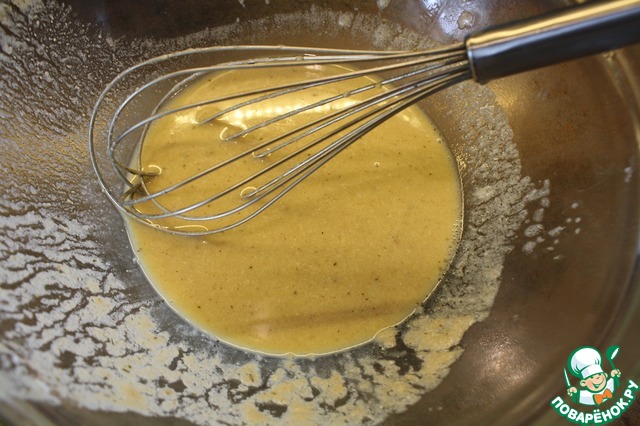 • Тонкой струйкой вливаем в желтки небольшое количество горячего соуса тщательно перемешивая. Это нужно для загустения нашего соуса и чтобы желтки не свернулись в кастрюле с горячим соусом.