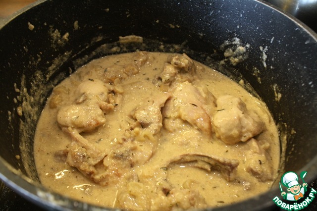 Признаться соус был очень жидкий (на Вашей итоговой фотке его нет, наверное, Вы слили). Кролик был неплохой, но соус отдавал мукой, муж этого прям не любит. В общем, признаться, не самый удачный вариант приготовления кролика. Может быть, я что-то неправильно сделала, хотя чётко придерживалась рецепта. А может быть у всех просто вкусы разные. Тушила дольше и все равно не сказать, что нежнейший. Мы делаем думляму с кроликом, вот там час тушится и мясо прям отваливается от косточек