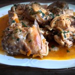 Получился вкуснейший кролик!!! Я сделала вариант фрикасе. Но я кролика предварительно не обжаривала и муку добавила в яичную заливку. Меня немного подвела сметана, свернулась. Но это не повлияло на вкус блюда. Роб, спасибо за прекрасный рецепт! Осталось испробовать второй вариант приготовления кролика.