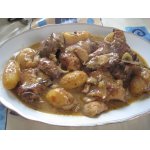 Мне сегодня привалило счастье , брат привёз домашнего кролика весом в 2,5 кг ! Этот рецепт был в КК уже давно, и второй вариант ( с белым соусом) я уже готовила , а сегодня и первый. Оба варианта замечательные , готовить не сложно, мясо поджарила в чугунке, а овощи рядом на сковороде . Переложила всё в мультиварку, и тушила 2 часа. Как всегда, без отсебятины не обошлось, добавила ещё и морковь, половину айвы и перечную пасту "янним" , ну любим мы острое . Мяско нежное, сочное, аж от костей отстаёт . Спасибо Роберт за наш вкусный обед .