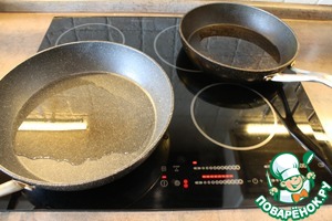Ставим на разогрев две сковороды, наливаем небольшое количество растительного масла и хорошо нагреваем.