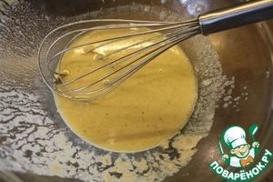 Тонкой струйкой вливаем в желтки небольшое количество горячего соуса тщательно перемешивая. Это нужно для загустения нашего соуса и чтобы желтки не свернулись в кастрюле с горячим соусом.