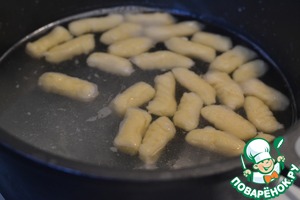 Выкладываем готовые ньокки в миску с помощью шумовки.