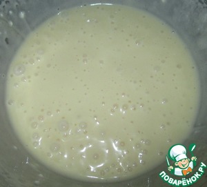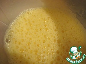 Частями добавлять в яичную массу и взбивать миксером. Тесто получается блестящее, гладкое. Напомнило мне заварное по виду. -