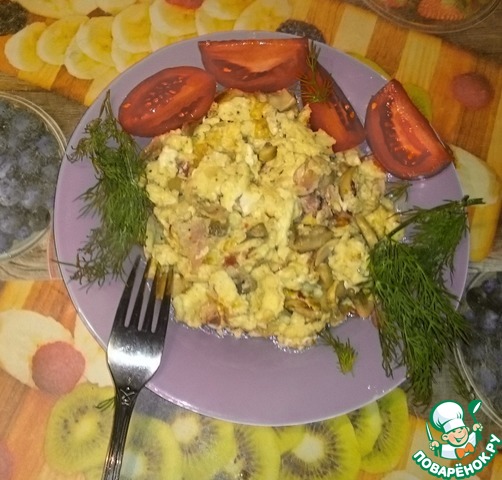 Решил попробовать ради интереса приготовить омлет с грибами из фильма "Астерикс и Обеликс против Цезаря". Там где колдун пытается помириться с Астериксом. Правда поганки заменил шампиньонами, а еще лучше лисичками и добавил немного сырокопченой грудинки Быстро и просто, как все, что делается из яиц и в кино.
