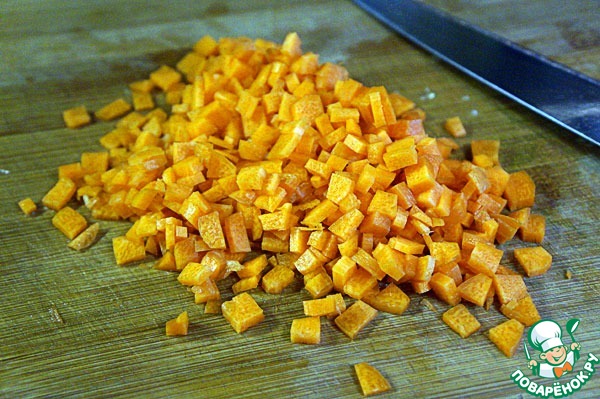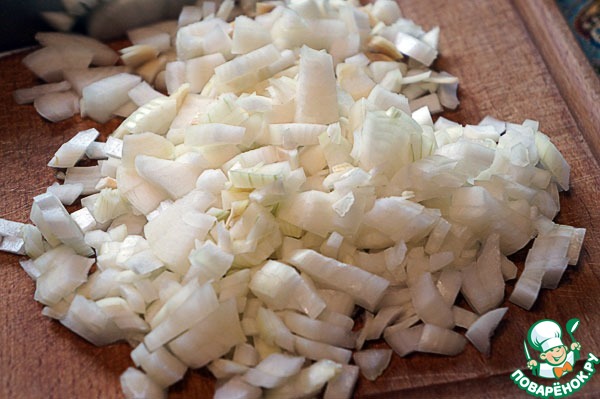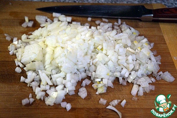 Лук, приготовленный для бульона, порезать мелким кубиком.