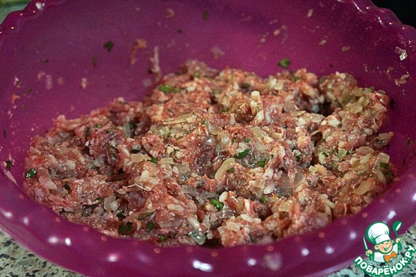 - Фарш мясной (свинина и говядина пополам) — 900 г