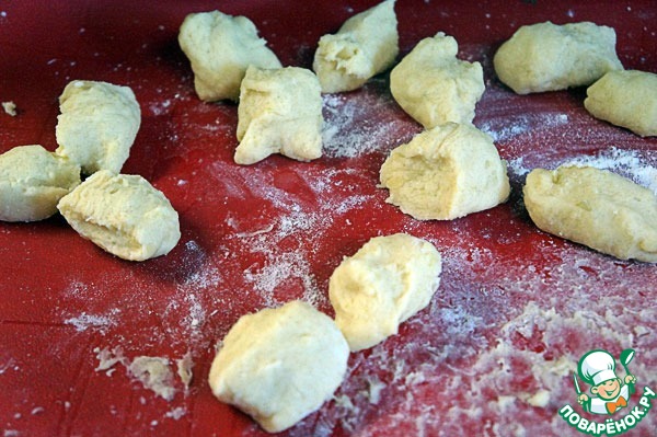 Затем отделять от него небольшие куски, раскатывать в цилиндры толщиной примерно 2-3 см, разрезать на кусочки по 3-4 см длиной.