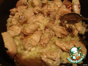 сковороду с маслом нагреть и выложить обжаривать мясо -