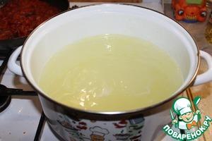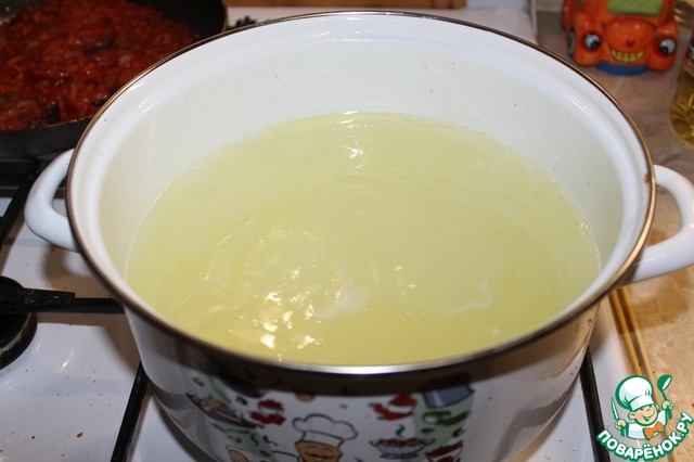 Добавляем зажарку. Солим и перчим по вкусу. Кипятим 5 минут.