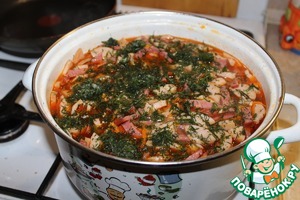 Добавляем зелень. Доводим до кипения и кипятим 2 минуты.