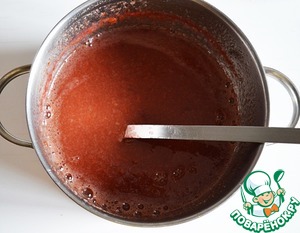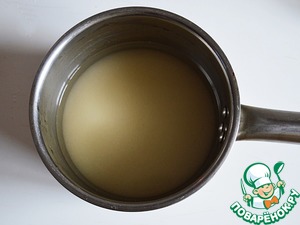 В сотейнике смешать оставшийся сахар и 200 мл воды, варить на малом огне до растворения сахара.