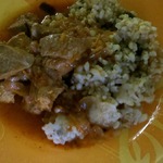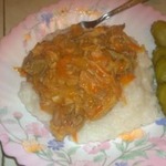 в измельчителе. Ели с рисом и маринованными огурцами.