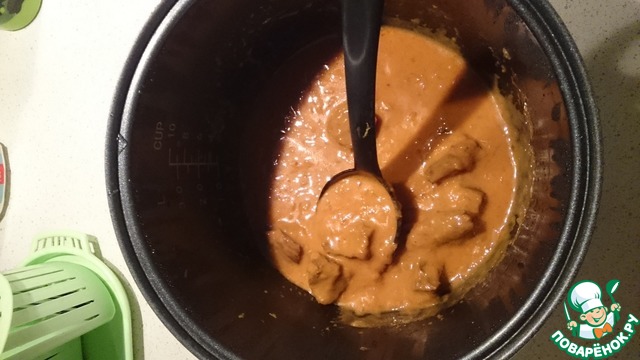 За 15 мин. до окончания программы, добавляем сметану, перемешиваем и ждем окончания программы.