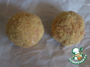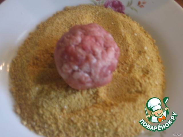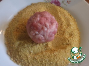 К фаршу добавить измельченную луковицу (мясорубка или блендер), 6 ст. ложек сухариков, тертый сырок, мелко рубленную зелень, яйцо, хорошо размешать. Сформировать круглые котлетки, обвалять их в остатках сухарей, выложить на противень, запекать в духовке 200 С около 25-30 минут (у меня они были маленькие по размеру).