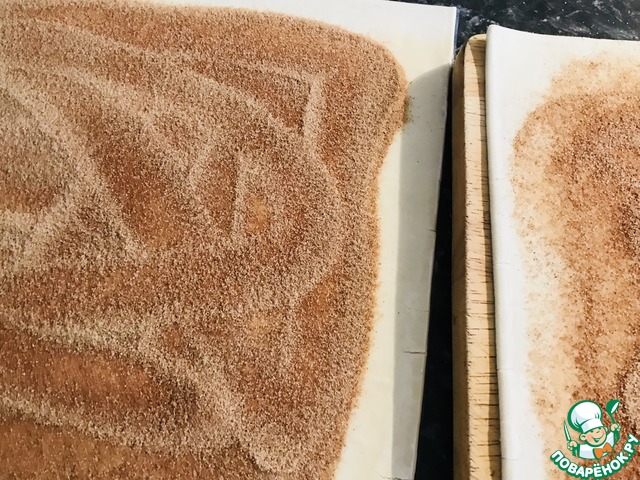 На тесто ровно, на всю поверхность посыпать корицу.