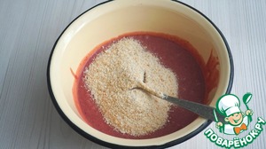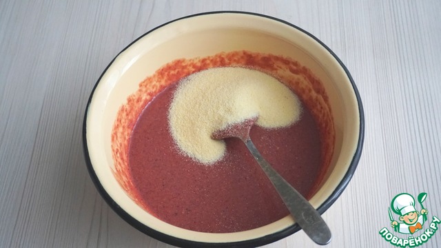 Добавить крупу семолину (можно заменить обычной манной крупой) - 20 гр. Смесь еще раз хорошо вымешать.