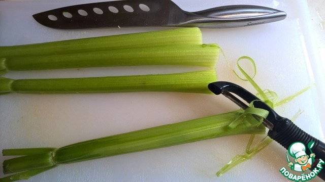 Сельдерей очищаем от продольных волокон с помощью овощечистки