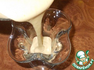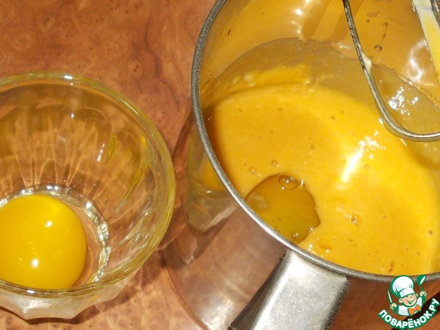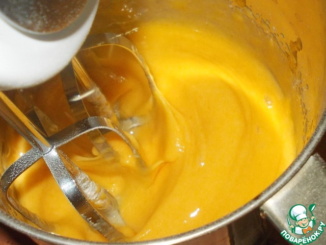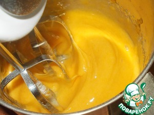 Через 3-4 минуты работы миксером видим, что масса становится пышнее и начинает светлеть.