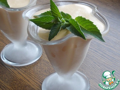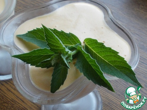 Приятным вечерком извлекаем вкуснятину из морозилки. Украшаем мятой (она замечательно съедается вместе с десертом) и приглашаем свою вторую половинку на десерт!