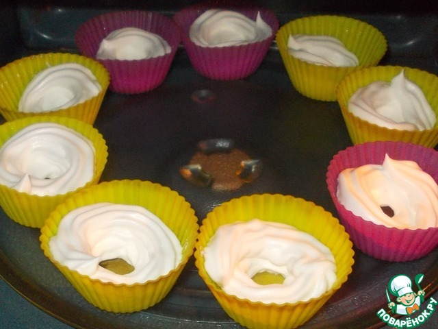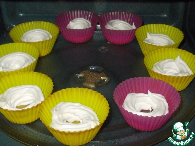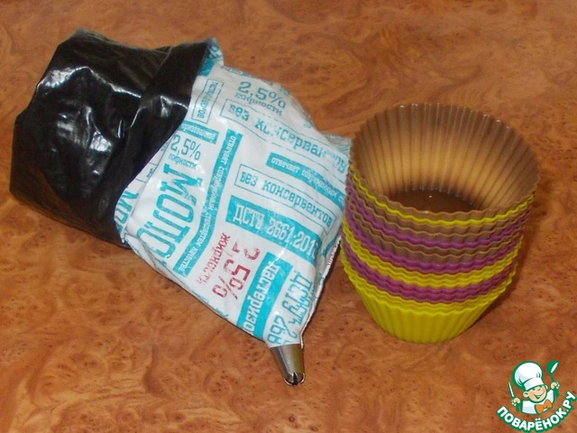 Сразу подготавливаем кондитерский мешочек с насадкой и силиконовые формочки. У меня кондитерский мешочек из пакета из под молока и насадка звезда. Формочки ни чем не смазываем.