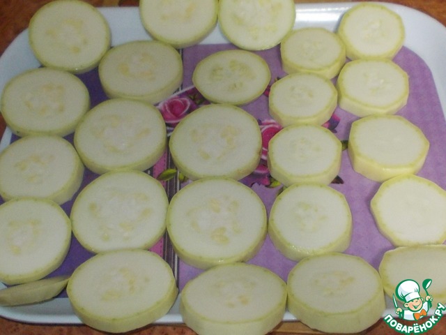 Трем на крупную терку кабачки из расчета на одну порцию тортика. (У меня вес около 1 кг).
