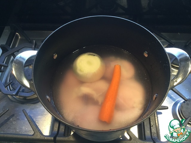 Желатин разводим бульоном из под курицы