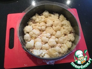 Цветную капусту выкладываем вторым слоем на курицу