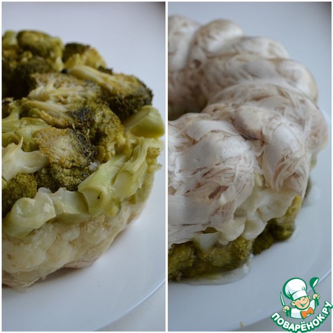 [+4]Филе я отваривала только с душистым перцем, без добавления овощей; капусту готовила в пароварке 20 минут; желатин использовала быстрорастворимый; не солила; желе разливала в силиконовые формы.