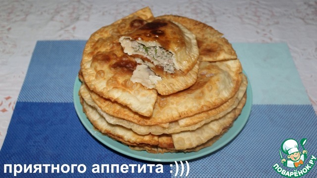Очень аппетитные, вкусные чебуреки. Тесто получается очень нежное и хрустящее.