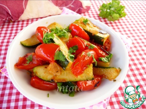 Овощная закуска (гарнир) из цуккини и помидоров готова.