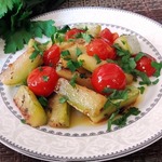 Хочу предложить приготовить острую вкусную закуску (гарнир) из цуккини с маленькими помидорками. Для этого я использовала мелкие цуккини. Готовится закуска быстро. Можно использовать в качестве гарнира к мясу.