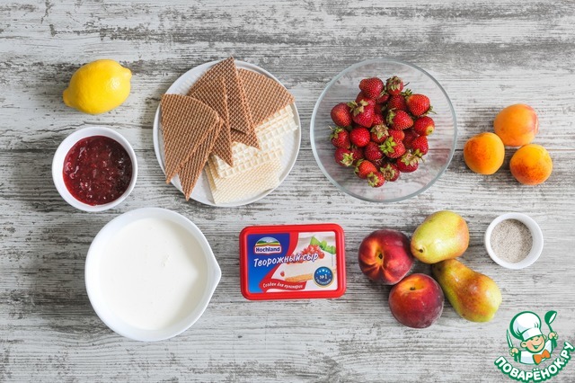 Ингредиенты для «Клубнично-сырный дип к фруктам и ягодам»: