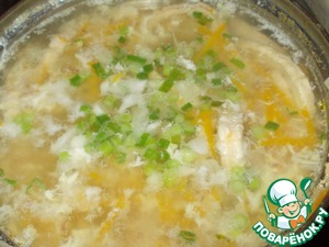 По прошествии 10 минут вливаем яйцо размешивая вилкой, чтоб распределить равномерно его.