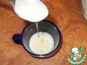 Далее выливаем наш желатин с медом в сахарную пудру.