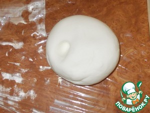 Мастика вобравшая в себя 200 г сахарной пудры по ощущению, примерно, как пельменное тесто. Кладем ее либо в пакет (чистый и сухой), либо заматываем в пищевую пленку.